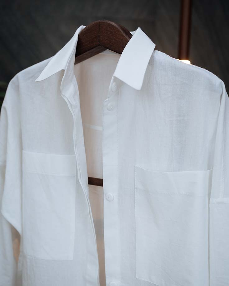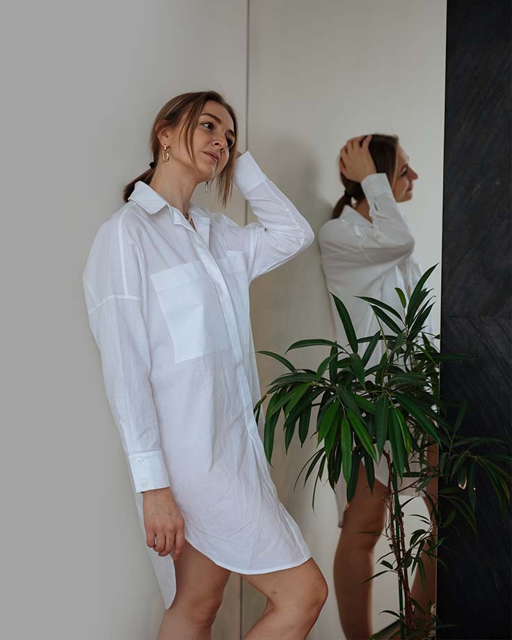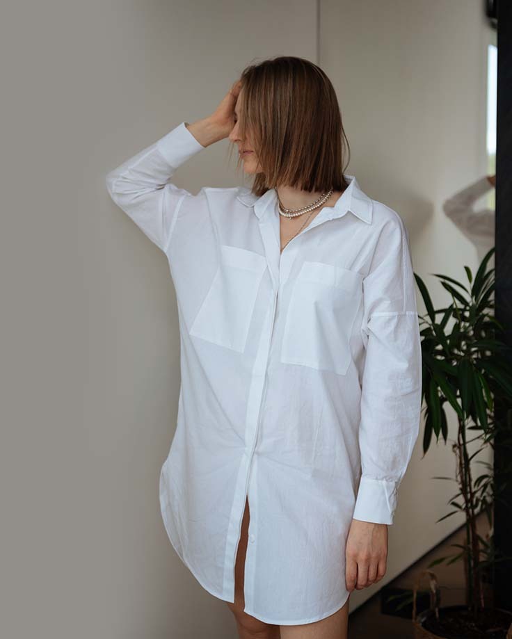 Ткань с эффектом благородной помятости, обработана по специальной технологии для придания дополнительной мягкости и стильного внешнего вида. Очень уютная и приятная к телу. Рубашка легко сочетается с любыми низами: шорты, юбка, брюки, но и прекрасно смотрится, как самостоятельный элемент, типа туники. За счет легкости и хорошей воздухопроницаемости рубашка быстро сохнет и не нуждается в утюге, достаточно после стирки её встряхнуть и аккуратно развесить или разложить на поверхности.