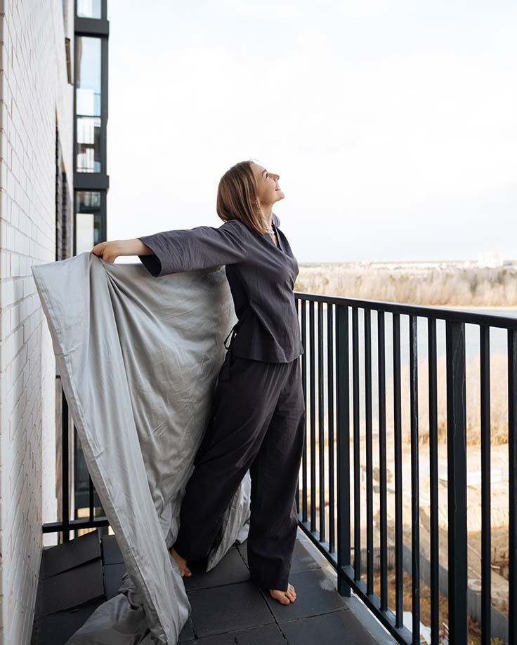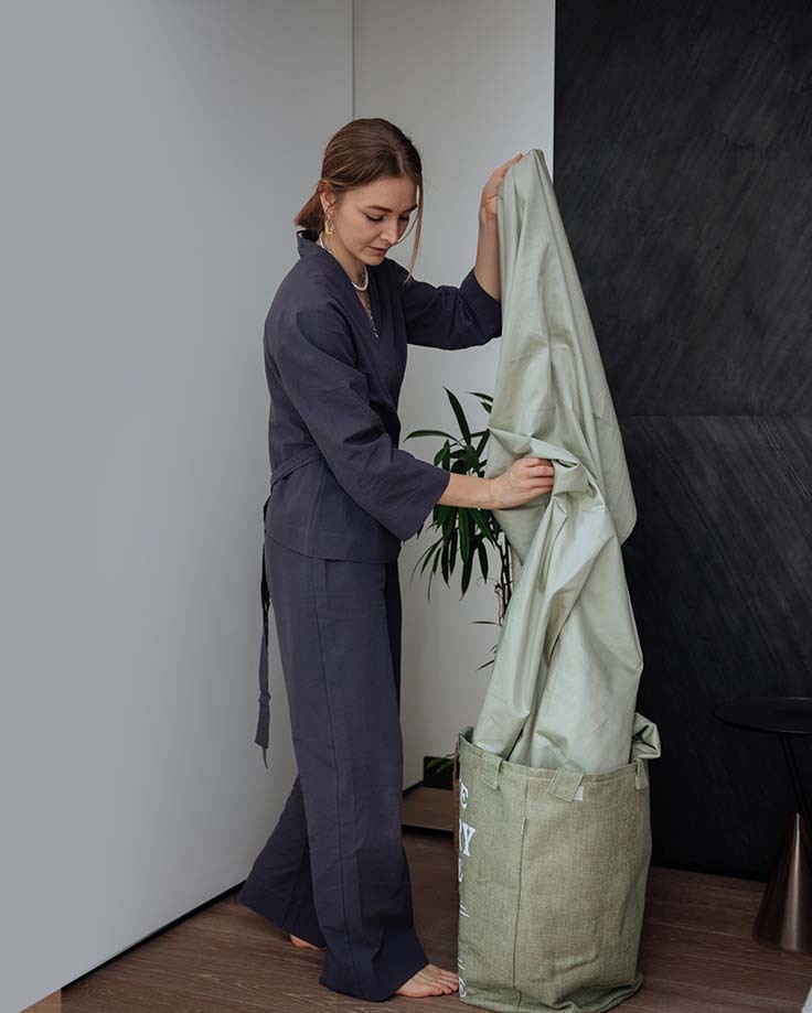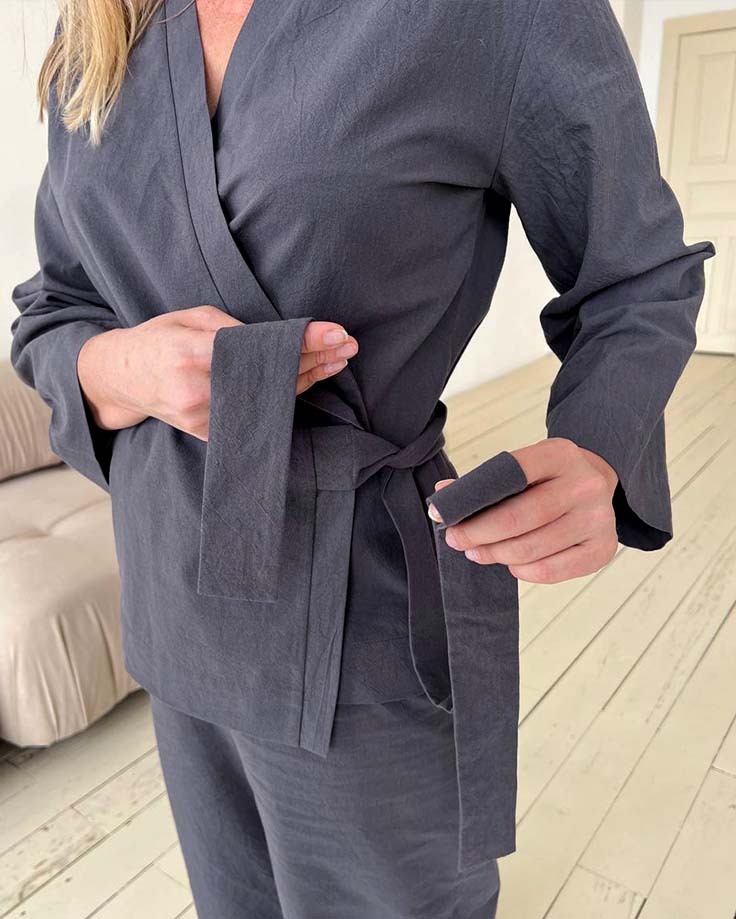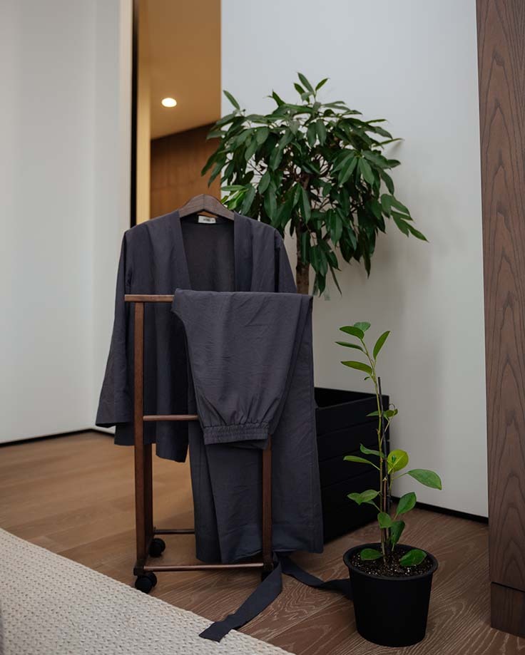 Мы знаем свойства хлопка: он помогает коже дышать и чувствовать тактильный комфорт. Фасон костюма не сковывает движений, в нем будет одинаково комфортно валяться и читать книгу, играть с детьми или стряпать блинчики...