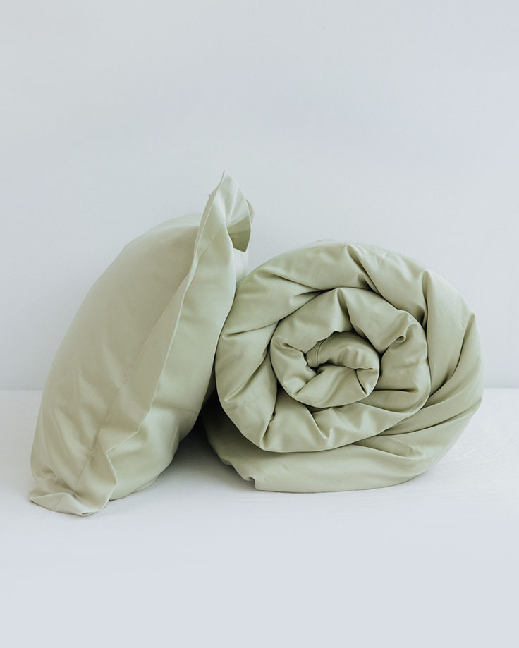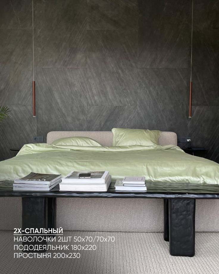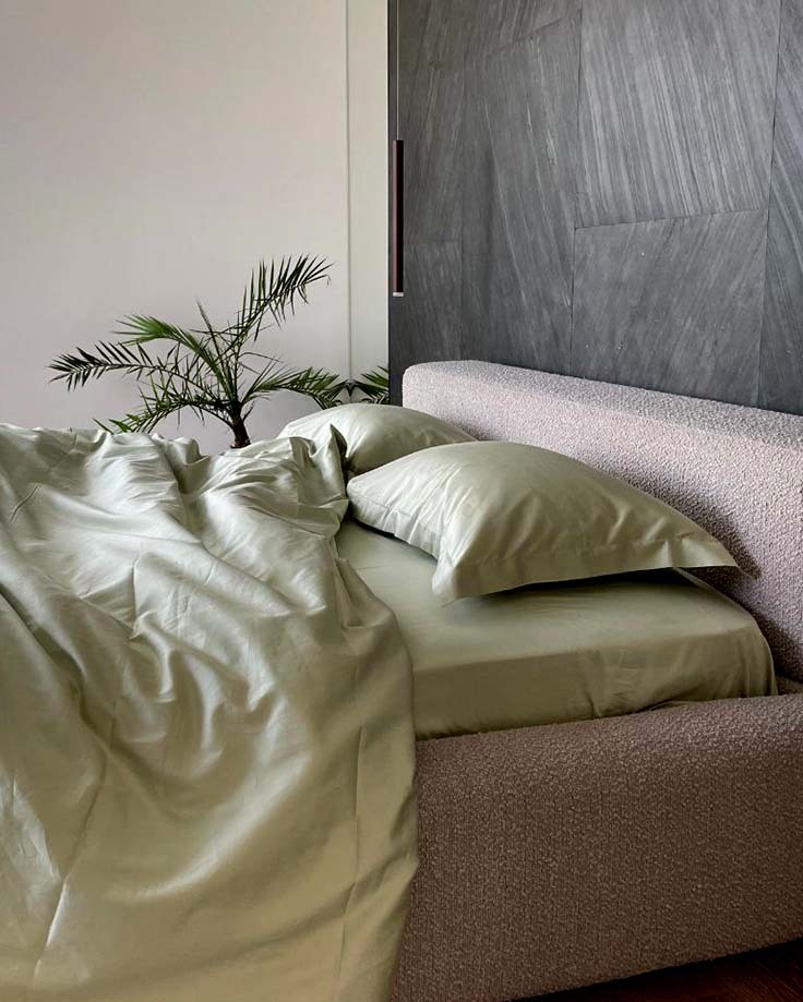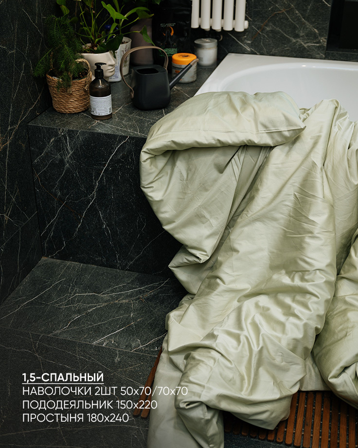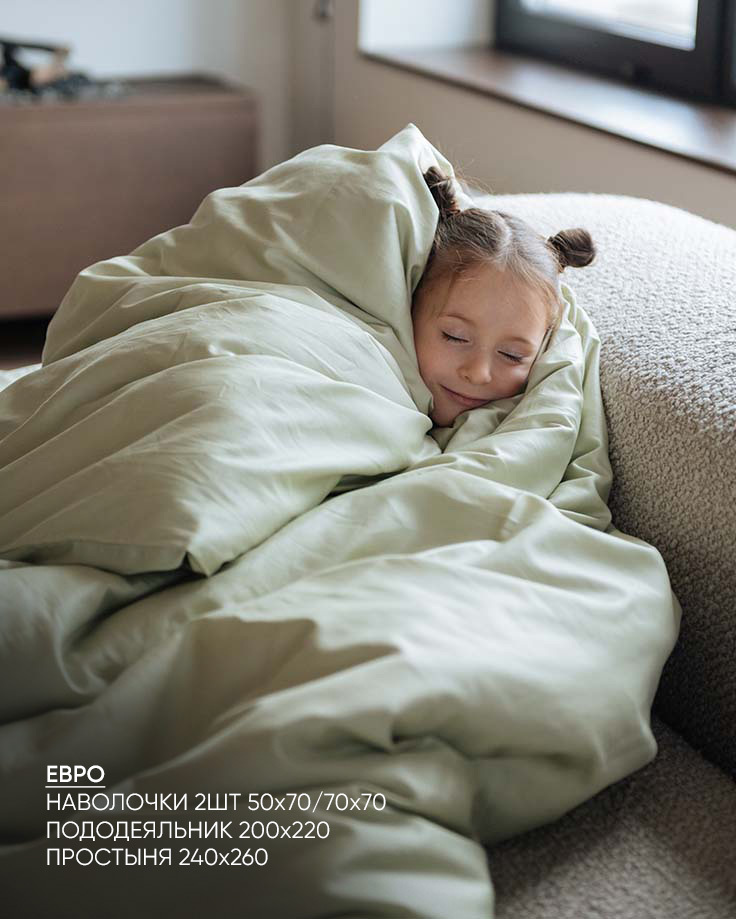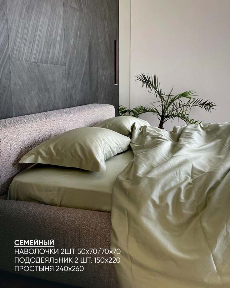 Однотонный комплект из гладкой сатиновой ткани. Абсолютно гипоаллергенный материал, идеальная терморегуляция и натуральный состав обеспечит Вам комфортный и здоровый сон