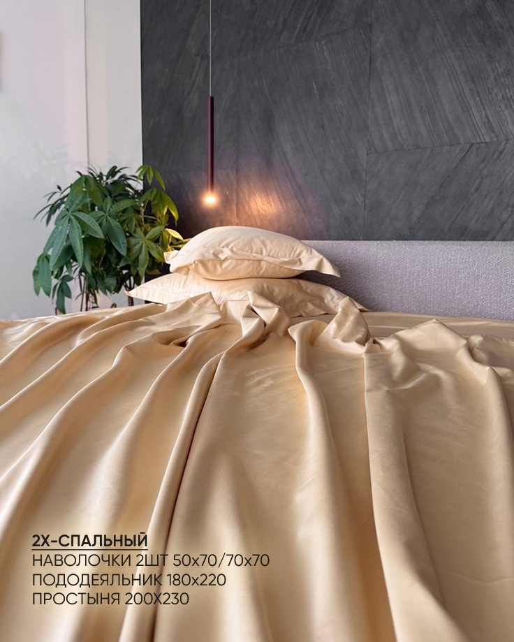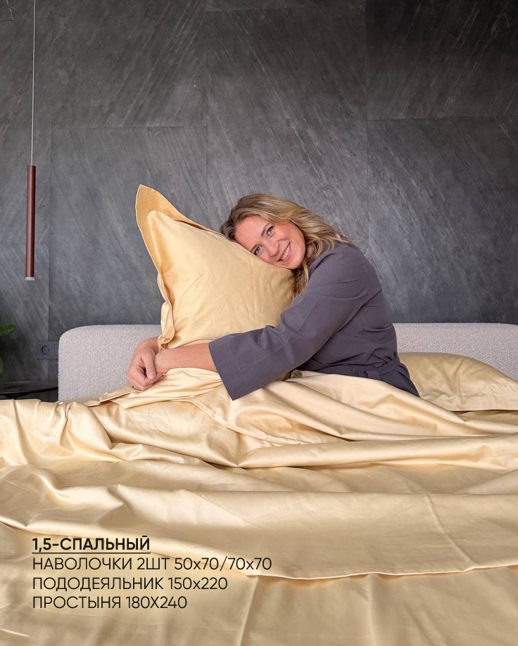 Однотонный комплект из гладкой сатиновой ткани. Абсолютно гипоаллергенный материал, идеальная терморегуляция и натуральный состав обеспечит Вам комфортный и здоровый сон