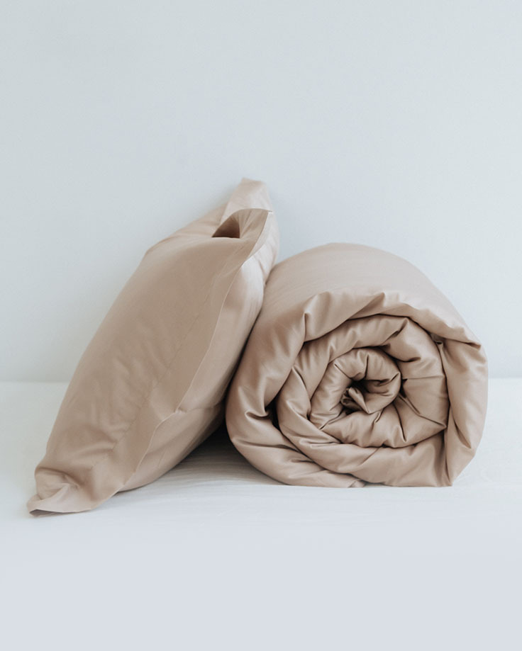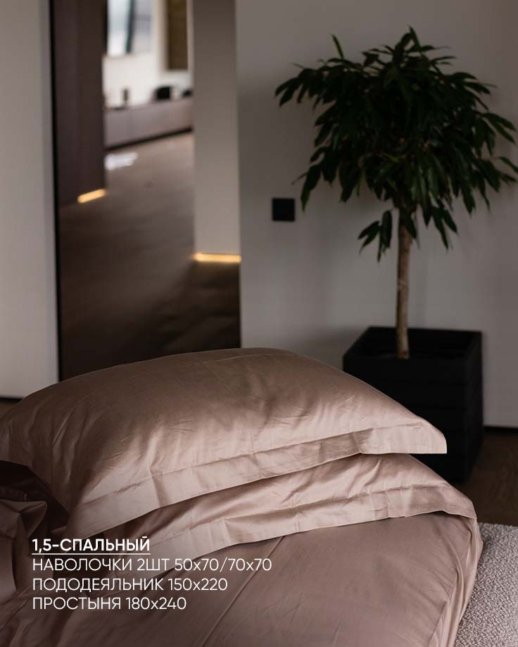Однотонный комплект из гладкой сатиновой ткани. Абсолютно гипоаллергенный материал, идеальная терморегуляция и натуральный состав обеспечит Вам комфортный и здоровый сон