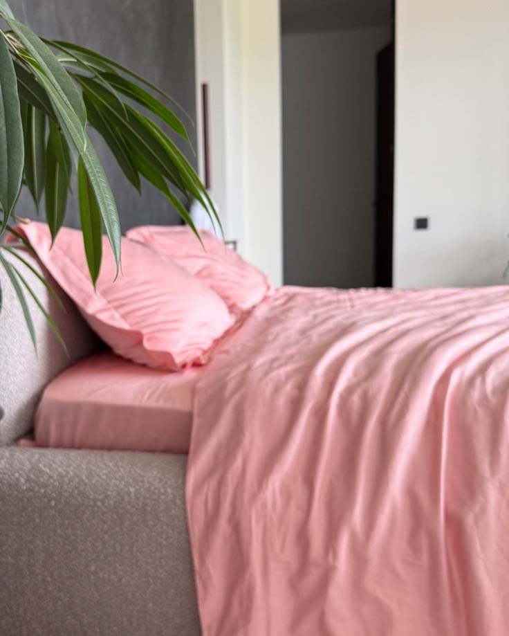 Подарите себе подарок - остров нежности и спокойствия. Позвольте розовому сатину окутать вас теплом и любовью, рассветным небом, лепестками цветущей сакуры. Почувствуйте, как тело расслабляется, а сердце наполняется благодарностью за каждый миг, за возможность замедлиться и насладиться моментом сна и отдыха.