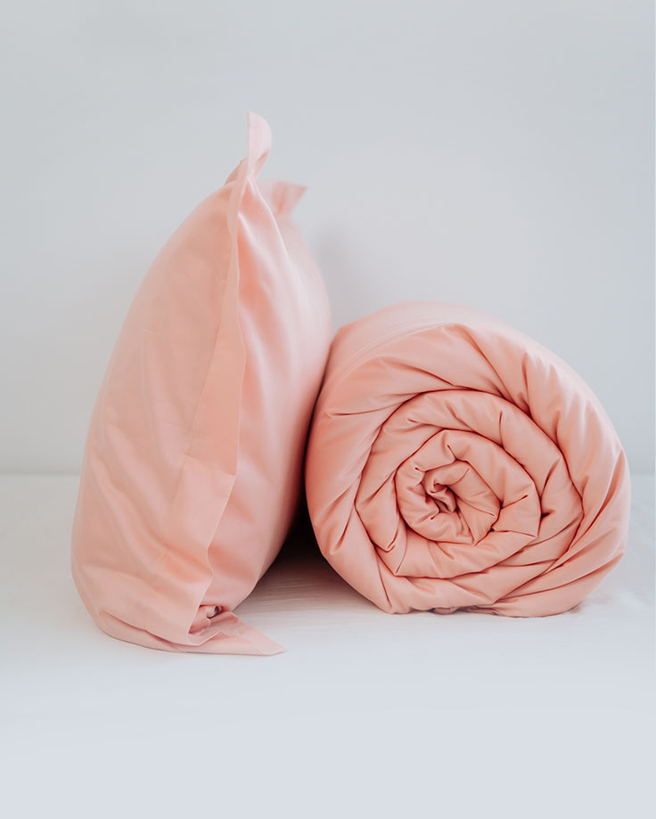 Однотонный комплект из гладкой сатиновой ткани. Абсолютно гипоаллергенный материал, идеальная терморегуляция и натуральный состав обеспечит Вам комфортный и здоровый сон