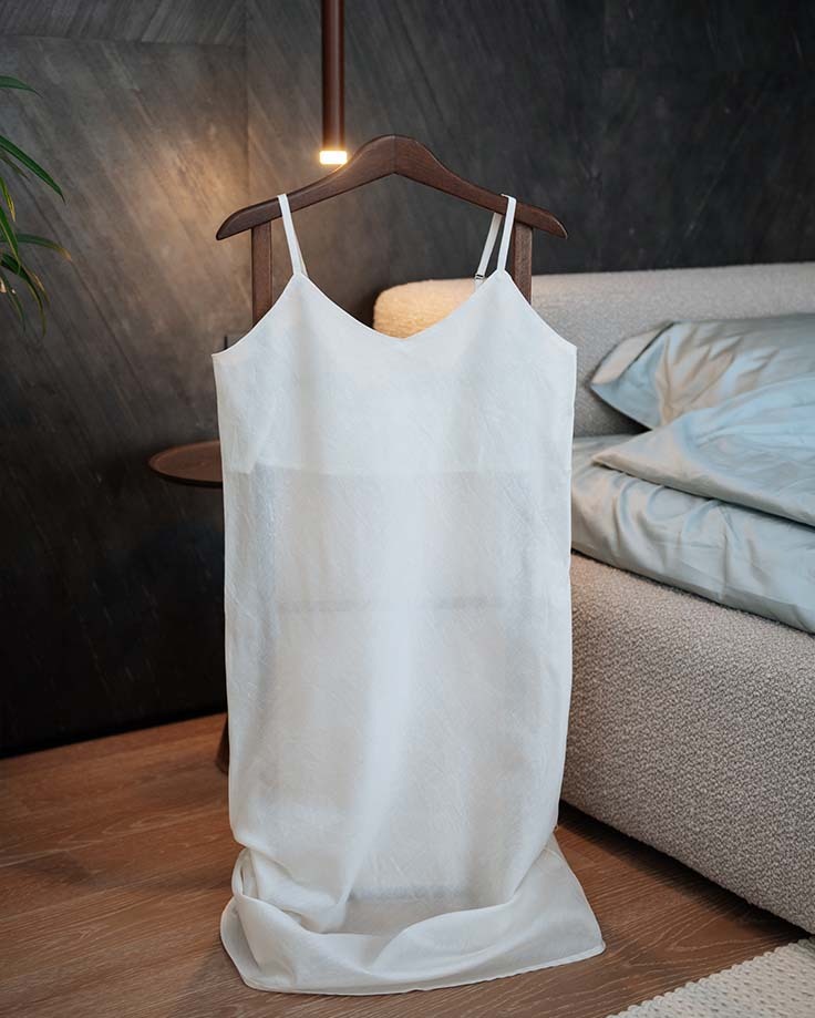 За счет того, что в составе ткани доминирует шелк, наша ночная рубашка имеет красивый жемчужный блеск. А еще у нее тоненькие регулируемые бретели, деликатная прозрачность вуали и второй мягкий хлопковый слой в районе груди. Ученые утверждают, что самая подходящая одежда для сна – ночная рубашка. Оно и понятно: свободное облегание тела, вентиляция, нет сдавливания резинками, как у пижамы и, что немаловажно, соблазнительный вид.