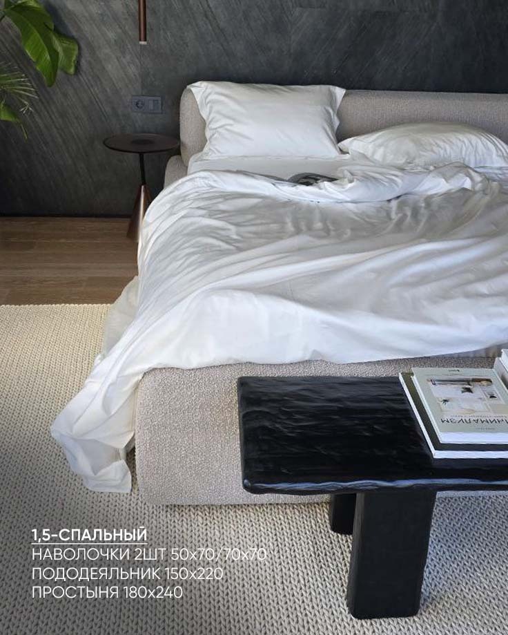 Почувствуйте нежность постельного белья, которое изготовлено из хлопка и тенселя - экологически чистого эвкалиптового волокна. Такой дуэт окружит вас прохладой летом и согреет зимними вечерами, гарантируя идеальное равновесие комфорта для каждого мгновения сна. Гладкая и шелковистая, дышащая, антибактериальная и гипоаллергенная ткань для самой искушенной кожи. В этом оазисе комфорта вы найдете не только глубокий и здоровый сон, но и возможность восстановить силы, обрести гармонию и погрузится в мир нежности и покоя.