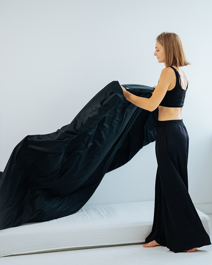 Угольный мгновенно преображает спальню, добавляя ей изысканность и стиль. Сон на роскошном угольно-черном тенселе дарит ощущение уверенности и заряжает энергией на весь день. Этот комплект – лучший подарок себе и своим любимым.