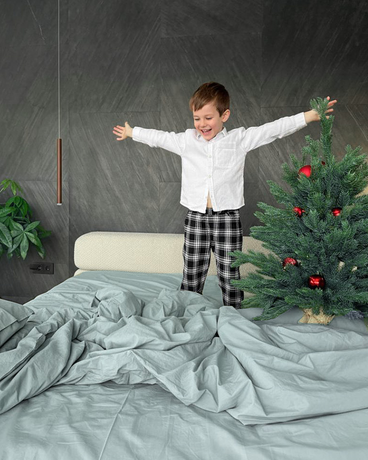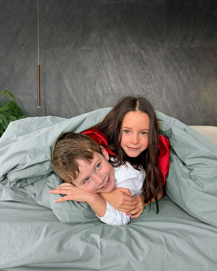 Однотонный комплект из вареного хлопка. Сшит для тех, кто любит валяться в постели и обниматься с любимыми людьми, а не стоять за гладильной доской.