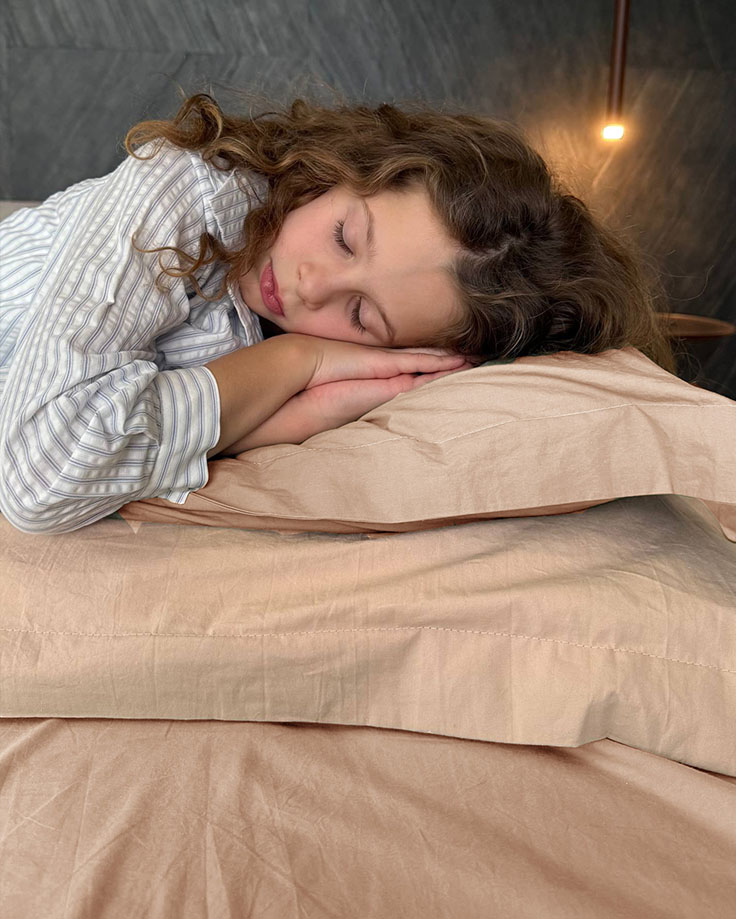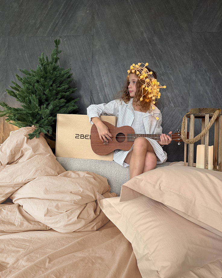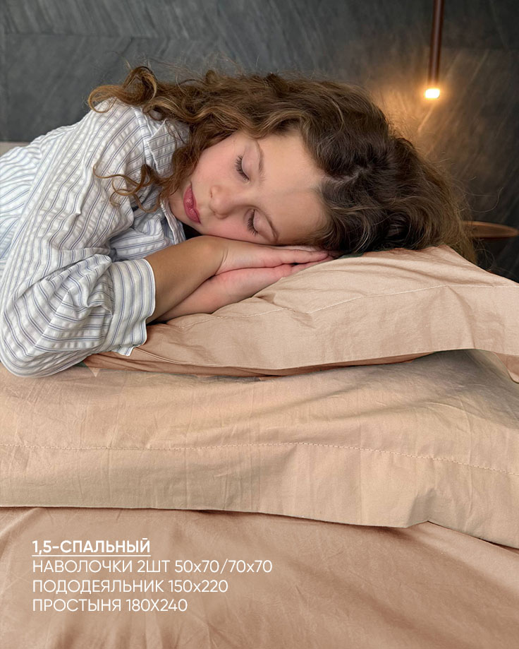 Однотонный комплект из вареного хлопка. Сшит для тех, кто любит валяться в постели и обниматься с любимыми людьми, а не стоять за гладильной доской.