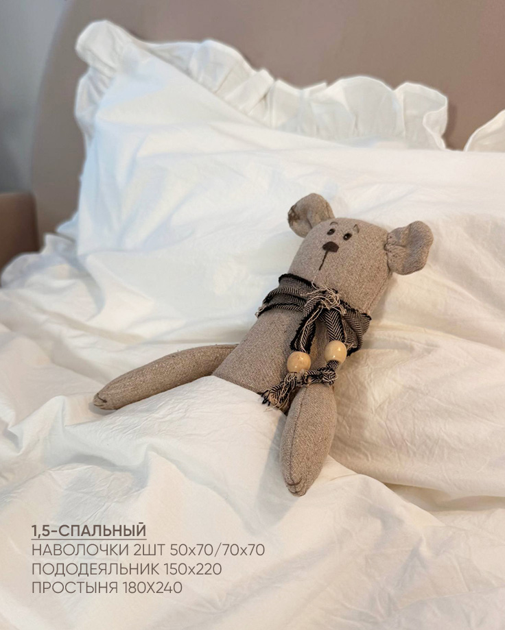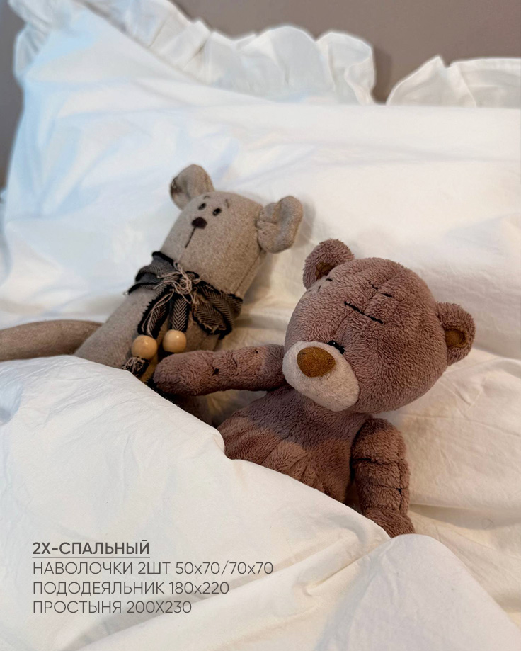 Однотонный комплект из вареного хлопка. Сшит для тех, кто любит валяться в постели и обниматься с любимыми людьми, а не стоять за гладильной доской.